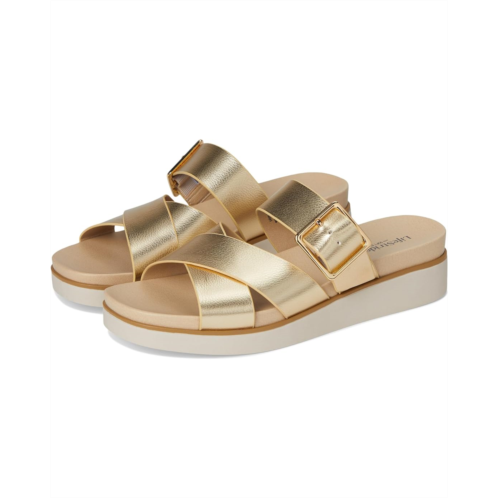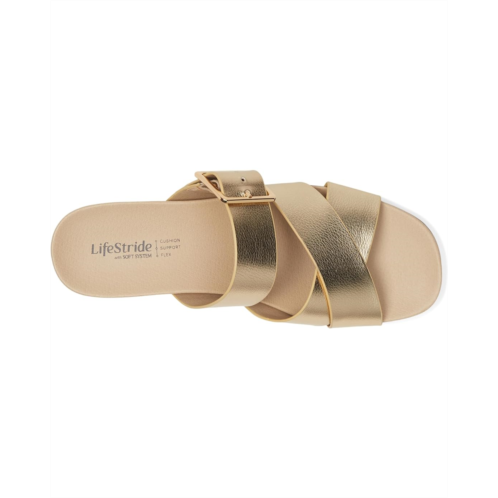 - Perfect for travel or every day, the LifeStride Getaway, a versatile women's strappy sandals have a trend-forward, yet classic feel. Platform sandals for women designed with faux leather straps, a soft square open toe, decorative buckle, and lightweight design. Linings crafted from partially recycled materials. Trusted Soft System comfort technology for unmatched cushion, support, and flexibility in every pair. Traction sole for extra stability.