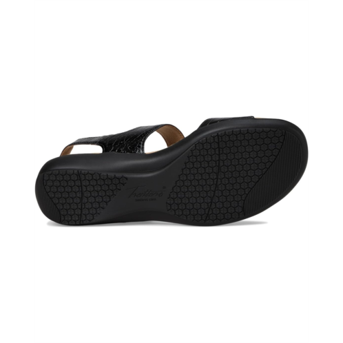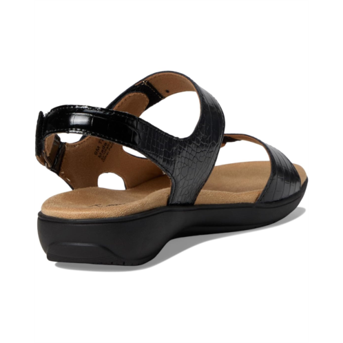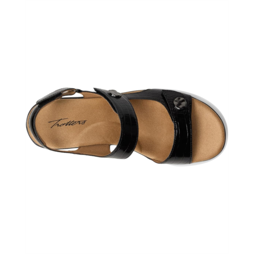 - Step into sophisticated style and unparalleled comfort with the Trotters Romi Croco Sandal. Designed with a luxurious croco-embossed finish, this sandal is the epitome of elegance and functionality. Crafted from rubber upper, velvet lining, and foam insole, this pair of sandals features open round toe, contoured footbed, double strap detailing with adjustable hook-and-loop closure, and wedge heel.