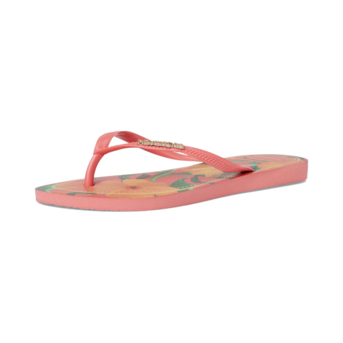 - The Havaianas Slim Tropical flip-flop has the Slim design you already know, with thinner straps and soles, featuring beautiful Brazilian tropical prints. The sandal also has the metallic Havaianas logo prominently displayed on the straps. Choose the one that suits you best now.