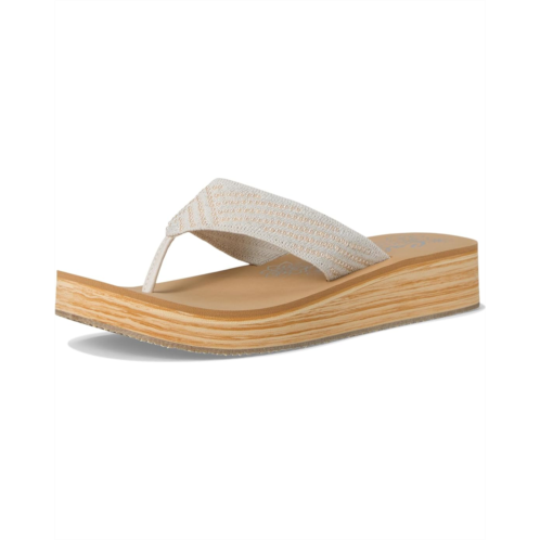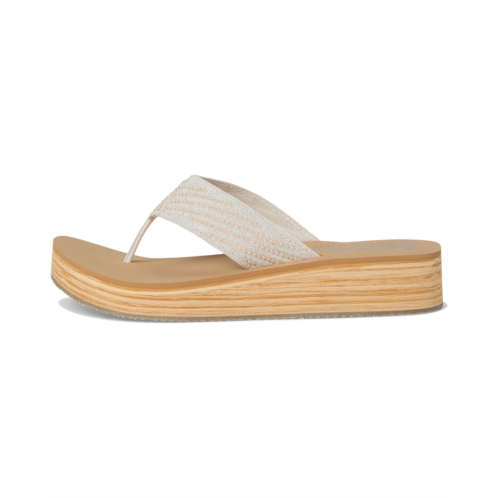 - Make sure you sparkle under the sunshine with superb comfort choosing the SKECHERS Summers Mid flip flop. This low wedge thong sandal features a pearl knit upper in a three-point thong sandal, plus Luxe Foam cushioned comfort footbed, faux wood grain detail on the midsole, and synthetic rubber lining.
