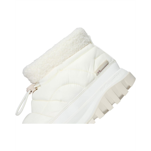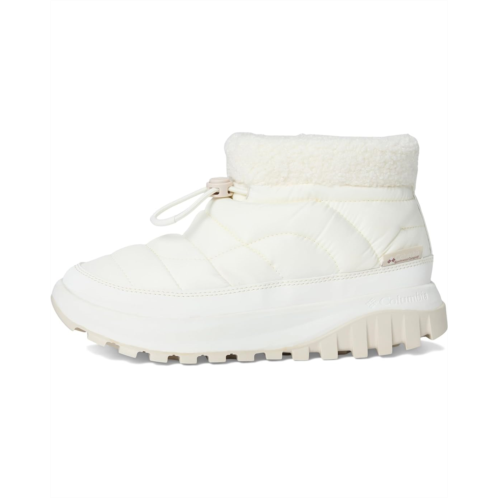 - The puffer-inspired Columbia Snowtrot Shorty is a commute capable waterproof boot with 200 g insulation for warmth. Features include a Techlite lightweight EVA midsole for long-lasting comfort, superior cushioning, and high energy return. The Omni-Shield water- and stain-resistant treatment offers added durability. Stylish sherpa collar is designed for ultra coziness.