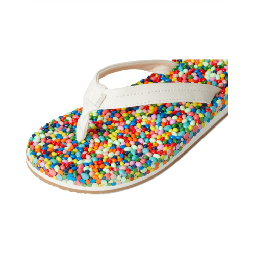 - Made of a quick-drying and water-friendly faux leather upper, the Sanuk Bubblecush slippers are the perfect choice for your beach trips and vacations. The fun rubber footbed is multicolored and has a squishy bead like texture and appearance while the 100% recycled jersey lining provides added comfort.