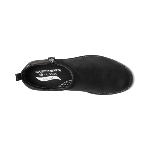 - Step into the season with stylish supportive comfort wearing SKECHERS Mojave - Indefinite Boots. This ankle boot features a micro leather and suede upper with a side-zip closure, faux leather lining, removable Arch Fit cushioned insole, and a lightweight flexible midsole that helps mold your foot to reduce shock. These are designed in a round-toe design, low-top height, and an ankle pull tab for donning & doffing.