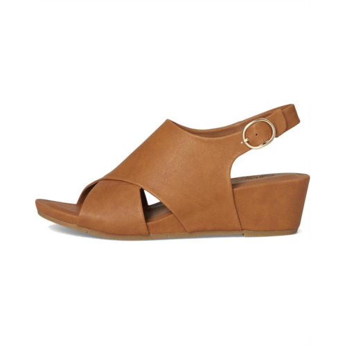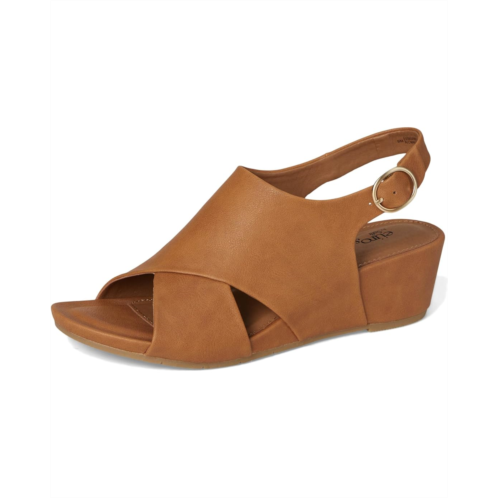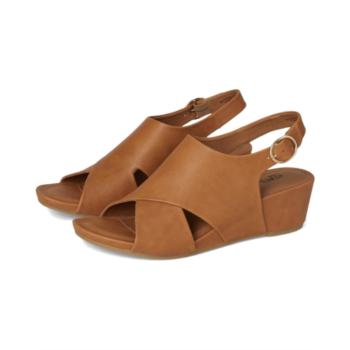 - The EuroSoft Rhonda sandals are comfortable wedge heels that are designed with an adjustable buckle strap for a perfect fit. These heeled sandals are made of a faux leather upper, foam insole, and faux leather lining. The cross-band upper design offers a chic look. Style up your different looks and outfits with these sandals.