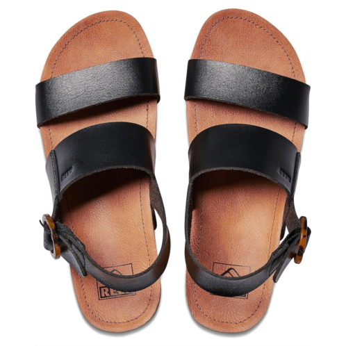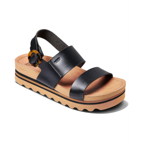 - Keep it stylish walking comfortably in the ankle-back Reef Vista Hi Buckle flip-flop sandals. Super soft unlined PVC-free vegan leather two-strap slide made with rPET. It has a wide shape round-toe silhouette with generous arch support and heel cupping with natural cork cover. It features a lightweight and durable EVA outsole with a platform silhouette and added lug design for traction.