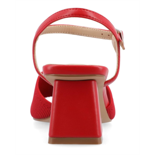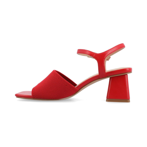 - Walk the runway in your vintage yet classic style wearing Journee Collection Evylinn Sandals. The block heel footwear features fabric upper construction with buckle adjustable ankle strap closure and open square toe silhouette.