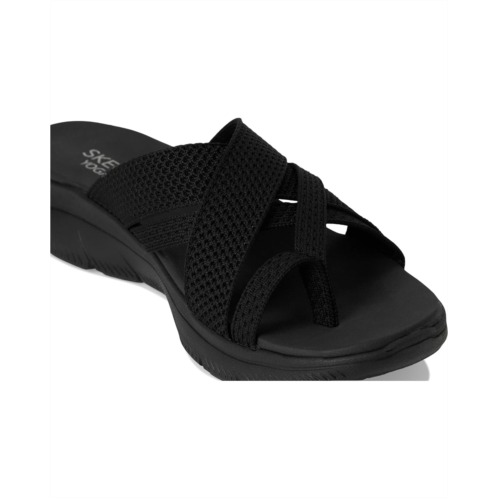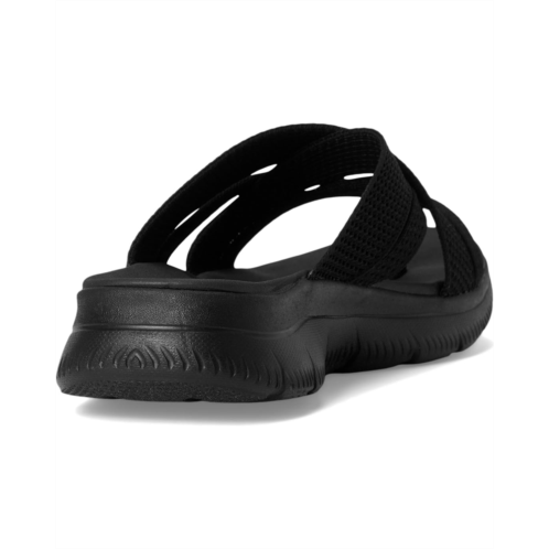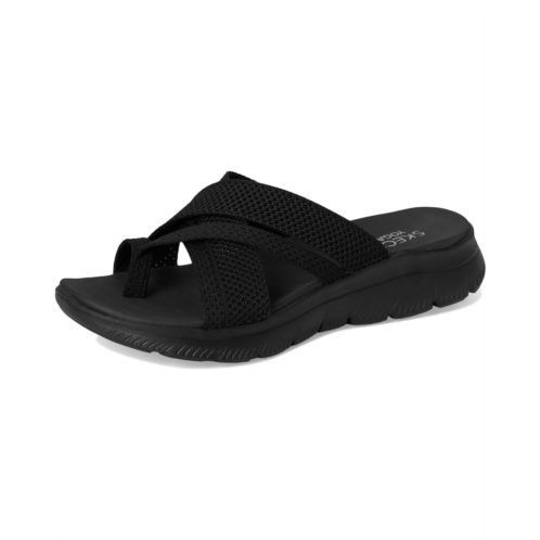 - Enjoy sunny-weather with signature comfort in the SKECHERS Summits - Fantasy Walk. This casual strappy sandal features a vegan leather upper with Skechers Hands Free Slip-Ins and a cushioned Yoga Foam footbed.