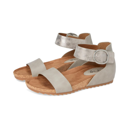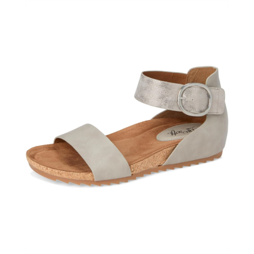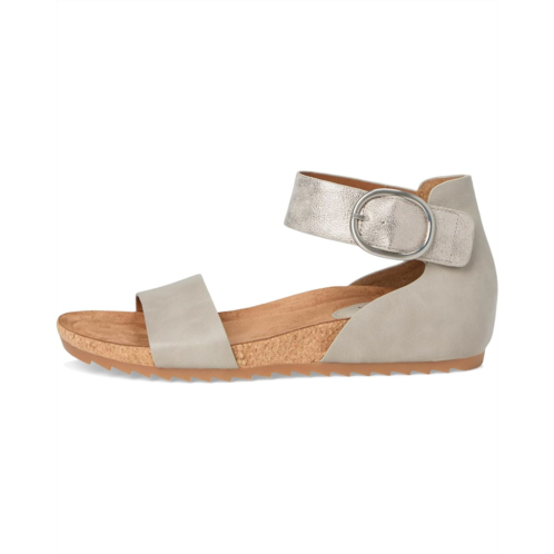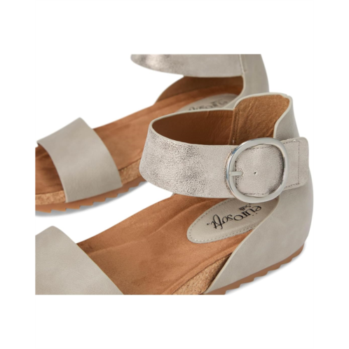 - The EuroSoft Ginney sandal combines practicality with contemporary charm. Featuring a two-piece upper for a sleek look, an adjustable ankle strap with hook-and-loop closure ensures a perfect fit with ease. The buckle accent adds a stylish touch, while the cork midsole offers both comfort and a natural aesthetic. With a flexible rubber outsole, these sandals are perfect for staying chic and comfortable all day.