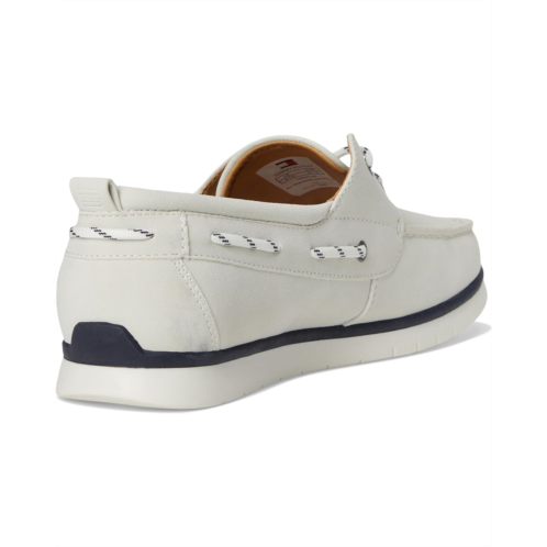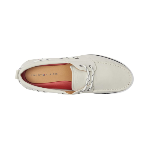 - Tommy Hilfiger Satorn boat shoes are an updated version of the classic two-eye boater. It is modernized by a hybrid bottom to add a more casual, everyday, aesthetic. Est. 1985, Tommy Hilfiger is a leading lifestyle brand celebrating the essence of American style. Crafted from faux suede upper, foam lining, this pair of shoes features round toe, slip-on style, lace detailing, and brand detailing on the footbed.
