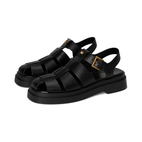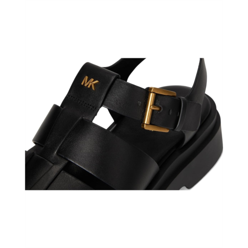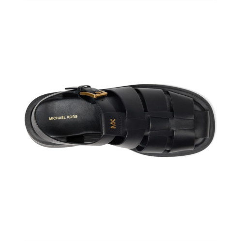 - Step into bold confidence wearing the MICHAEL Michael Kors Indy Fisherman sandal. Designed for the fashion-forward soul with a flair for casual-cool vibes, this standout silhouette features a luxe leather upper that brings effortless polish to any outfit. The adjustable buckle closure ensures a custom fit, while the PU lining and faux leather insole keep things comfy from brunch to boardwalk. Grounded with a durable rubber outsole for all-day wear, this sandal is where classic design meets rebellious edge.