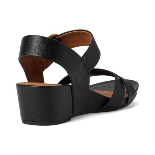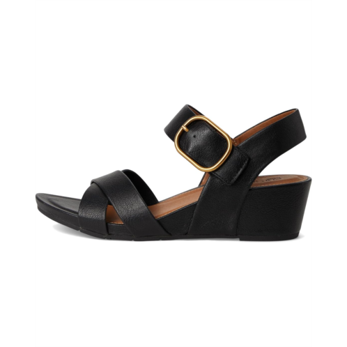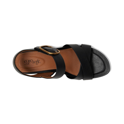 - Rise in fashion wearing the EuroSoft Rowe. Crafted from faux leather upper, lining, and foam insole, this pair of sandals features open round toe, cross band vamp, comfortable wedge heel, hidden adjustable hook-and-loop closure, big buckle accent, and brand detailing on the footbed.
