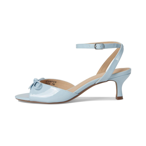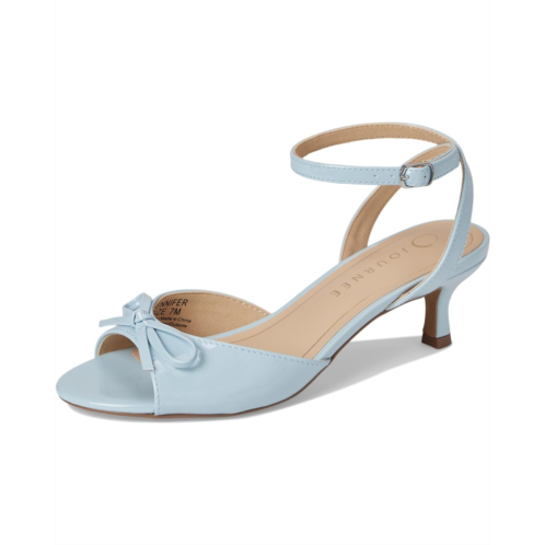 - The Journee Collection Jennifer heels will be the perfect finishing touch to your outfit with their bow detail. Made with patent faux leather, a buckled ankle strap, and an open round toe shape, this design will give you all the style you need to leave your house with a boost of confidence. These heeled sandals are made of a faux leather insole and polyurethane lining. Continuing to keep your feet happy, their padded footbed will leave your feet on top of the world with how comfortable they will feel.