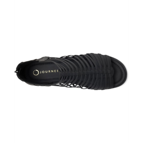 - Gladiator grace, reimagined: The Journee Collection Comfort Foam Delilah Sandal. Crafted with soft faux leather, this caged beauty features a hidden sliver wedge for just the right lift. The cushioned insole ensures all-day comfort, while the back zipper allows for effortless wear. Designed for versatility, these sandals seamlessly pair with everything from casual sundresses to sleek business attire. Finished with an open toe and a PU outsole, Delilah is the perfect blend of fashion and function-your go-to sandal for any occasion!