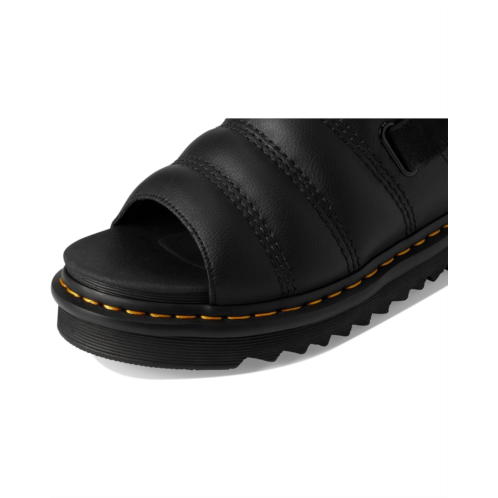 - The Dr. Martens Kole sandal is specially designed to combine a pillow-soft padded upper with a super-lightweight ethylene vinyl acetate outsole, so you can take your home comforts for a spin on the street. The molded SoftWair EVA footbed and EVA, PVC midsole will feel like walking on air, while the adjustable Ripstop hook-and-loop strap helps you find the perfect fit. Finished with signature DM's yellow welt stitching. The open round-toe sandal features a platform heel and is finished with signature Dr. Martens' Goodyear yellow welt stitching.