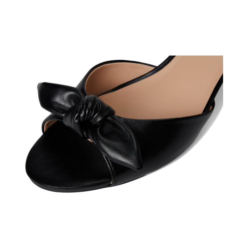 - Open, almond toe with bow accent.