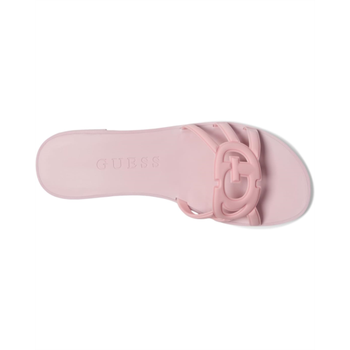 - With Elyho by GUESS, you're always ready to step out in confidence. Designed for everyday ease, this chic flat features a synthetic rubber upper paired with a durable synthetic rubber outsole that ensures comfort with every stride. The open, round toe gives it a breezy feel, while the slip-on construction makes it quick and convenient to wear wherever life takes you. A glossy PU lining adds subtle polish, and the standout cut-out G logo detail brings that signature GUESS edge.