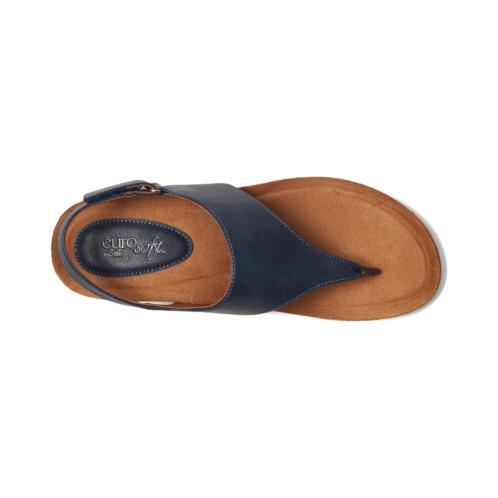 - Complete your everyday look wearing the EuroSoft Gretchen Sandals, crafted for enhanced comfort and style. The open round-toe sandals feature a thongkorea faux leather upper, a faux leather lining, a foam footbed, and a padded cork midsole. The slingback strap with hook-and-loop closure ensures a secure fit and the wedge heel adds a more striking detail.