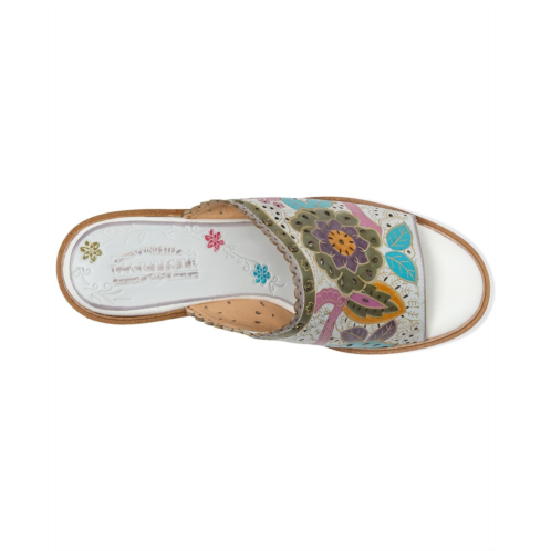 - The L'Artiste by Spring Step Calle sandal features a genuine leather upper adorned with hand-painted flowers, etched floral designs, and intricate laser-cut details that create an eye-catching, one-of-a-kind look. The architectural demi wedge heel showcases a cool cutout design, while the stretch gore upper ensures a secure, comfortable fit.