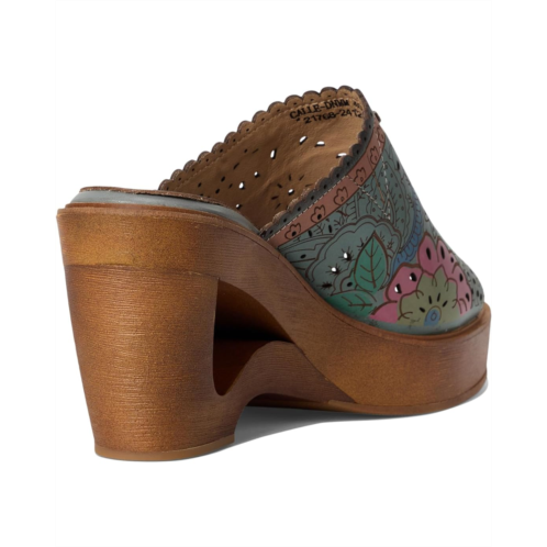 - The L'Artiste by Spring Step Calle sandal features a genuine leather upper adorned with hand-painted flowers, etched floral designs, and intricate laser-cut details that create an eye-catching, one-of-a-kind look. The architectural demi wedge heel showcases a cool cutout design, while the stretch gore upper ensures a secure, comfortable fit.