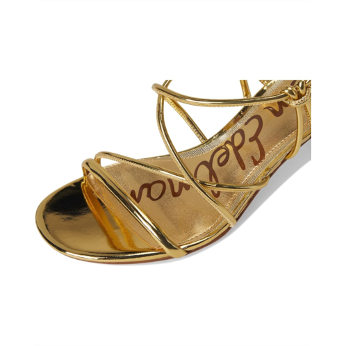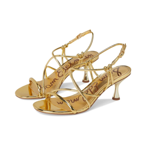 - The Sam Edelman Riana is a sophisticated strappy heel sandal designed for elegant evenings and elevated occasions. It features a minimalist silhouette with slim straps, a sculpted kitten heel, and an open round toe for a graceful finish. The adjustable ankle strap with buckle closure ensures a secure fit.