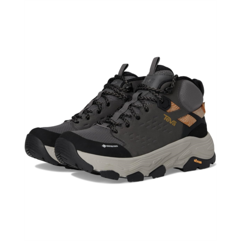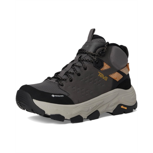 - The Teva Grandview Max GTX blends rugged durability with cutting-edge comfort, featuring a GORE-TEX waterproof bootie to keep you dry in any condition. The Universal Heel Lock System (UHLS) and speed hooks ensure a secure fit, while the LITE-COMF midsole delivers plush, all-day support. A Vibram MegaGrip outsole offers unbeatable traction, and the durable toe cap adds extra protection. Crafted with leather and textile materials for lasting wear, this boot is built to handle every adventure-rain or shine, peak or valley. Lace-up and step into limitless exploration!