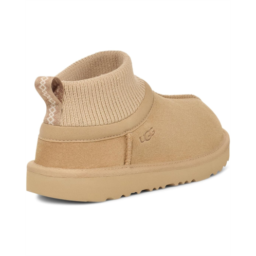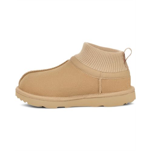 - Wrap your little one's feet in cozy chic donning UGG Kids Classic Ultra Stretch Cuff!' Elevate their style and comfort with these ankle-high boots featuring a luxurious suede upper and a recycled polyester and elastane shaft. Designed for easy wear with a pull-on style, they offer unbeatable warmth with UGGplush upcycled wool and TENCEL Lyocell lining, complemented by an odor-free treatment. The foam footbed and sugarcane EVA outsole provide cushioned support and a flexible fit, ensuring every step is as comfortable as it is stylish.