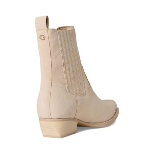 - Add a touch of western to your wardrobe wearing the GUESS Lanna3 ankle boots. This footwear features a pull tab on the back, accented with a metal toe rand adding an extra touch to this easy to wear style.