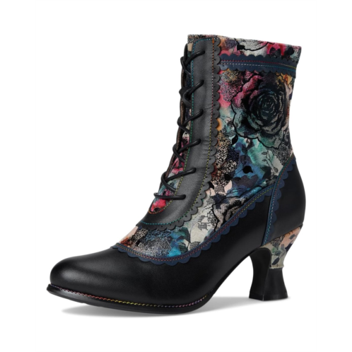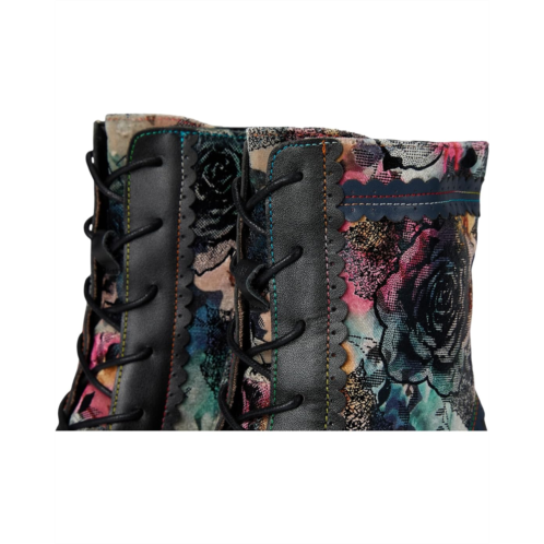 - The L'Artiste by Spring Step Bewitch-prit boot showcases vibrant floral patterns, scalloped trim, and rich textures for a truly one-of-a-kind look. The lace-up front allows for a customized fit, while the zippered side closure ensures easy wear. A sculpted mid-heel adds vintage charm and all-day comfort, supported by a rubber outsole for traction. Inside, the boot features a velvet lining and faux leather cushioned insole, making it as comfortable as it is striking.