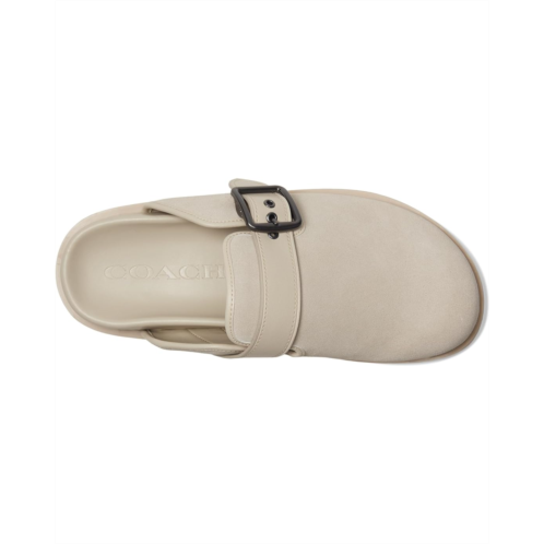 - The COACH Buckle Clog is crafted from suede upper and features an archival buckle detail for a sophisticated look. The molded footbed and rubber outsole provide added traction and all-day ease.