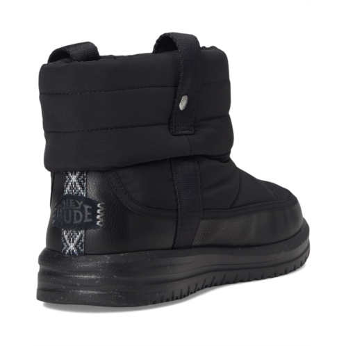 - Keep your feet warm and comfy in the Hey Dude Camden Cuff Nylon Quilt Boots with an easy slip on system and step out looking fresh, whatever the weather puts you through. Water-resistant, premium leather uppers meet the lightweight, flexible rubber outsole for comfy, seasonal style. The faux shearling interior and easy on heel webbing loop add to the comfort.