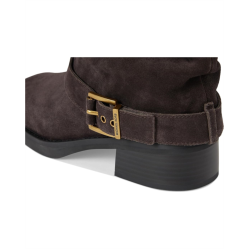- Introducing the MICHAEL Michael Kors Colby Flat Bootie, where timeless style meets everyday versatility. Crafted with a soft suede upper, this bootie is elevated by its distinctive skirt shaft design and polished buckle detail, giving it a statement-making flair that turns heads. The exaggerated square toe adds a bold, contemporary touch, while the ankle-high silhouette keeps it sleek and easy to style with everything from jeans to skirts. Designed with a faux leather insole, cozy polyester lining, and durable rubber outsole, it ensures comfort and lasting wear. The pull-on design makes slipping in and out a breeze, while the flat profile guarantees all-day practicality without sacrificing style.
