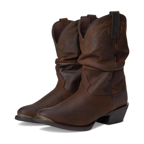 - For the modern cowgirl, the Laredo Lazy River boots offer a fresh take with their slouchy design and relaxed silhouette. These heeled boots are crafted with a leather upper and fabric lining. The side pull handles offer easy entry. Featuring a comfy removable orthotic EVA insole, medium round toe shape, Flight rubber outsole, and cowboy block heels, these calf-high leather boots combine effortless style with all-day comfort.