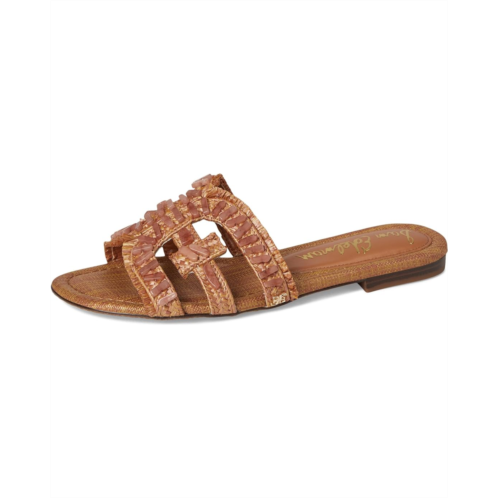 - The Sam Edelman Bay Stone slides are warm-weather chic. Versatile and easy to match, they look great whether it's a day at the pool or lunch with friends. These slide sandals are made of a polyurethane upper, leather insole, and polyurethane lining. Adorned with an iconic double 'E' logo, these flat sandals can be worn with cutoff jeans or a simple, flowing sundress.