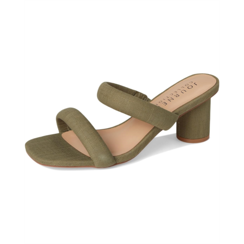 - The Journee Collection Aniko sandals offer a stylish and comfortable choice with their block heels, providing a subtle lift for various occasions. Their multi-strap design and slip-on closure add a trendy touch and convenience, while the open, square toe style enhances its modern aesthetic. Crafted with fabric for both the upper material and lining and featuring a 4 mm footbed and faux leather insole, these heeled sandals prioritize both fashion and comfort, making them chic and laid-back.