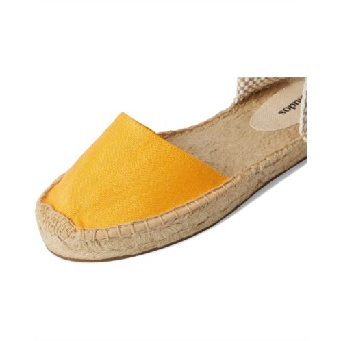 - Inspired by making a simple espadrille sandal, the Soludos Linen Lauren Lace-up sandals are created by stripping the upper of its classic and adding a feminine lace that's flattering on the leg and ankle. Made with a linen upper and a 25mm jute outsole, these sandals bring a fresh perspective to a timeless classic. They are made of a cushioned insole and cotton lining. Their slightly taller base adds a modern, chic touch. Flattering and feminine on the leg with a tie-up design for when you're on the go, these espadrilles pair perfectly with dresses, linen pants, and denim shorts - there are as many outfits you can wear them with as there are ways to tie them.