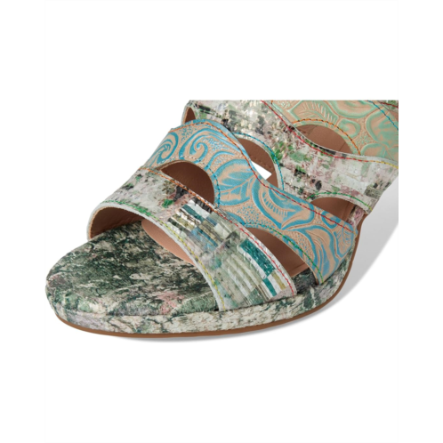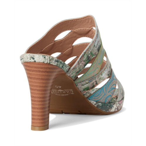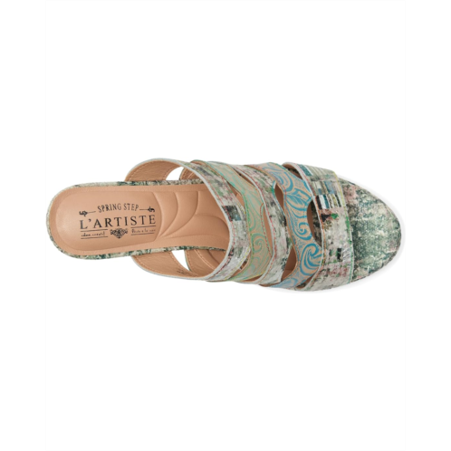 - The L'Artiste by Spring Step Aurielle sandals features open-cut stacked combinations of printed and embossed metallic leather on the upper, a plush textile footbed, and a platform that compliments the colors on the upper.