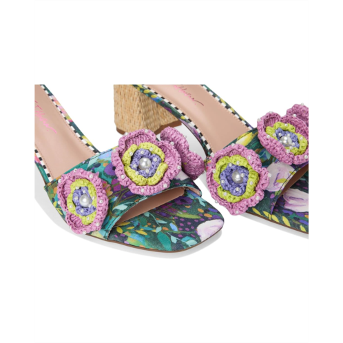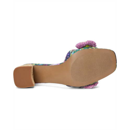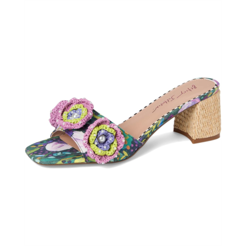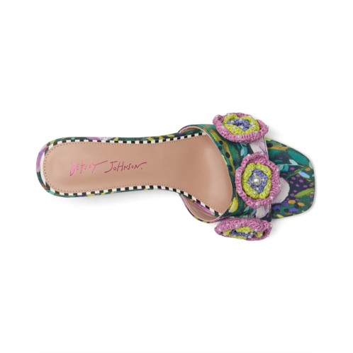 - Perfect for any fashionista, the Blue by Betsey Johnson Dietrich is sweet and girly with its bright print and flower embellishment. This slip-on sandal is designed with faux leather upper and a square toe silhouette.