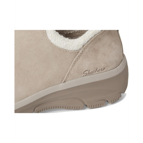 - Get warm comfort and smart, versatile style instantly choosing the SKECHERS Easy Going - Sweet Behavior. Soft suede upper in a low ankle-height slip-on casual cool weather bootie with chenille collar trim and Skechers Air-Cooled Memory Foam cushioned comfort insole. It has a bootie design with cutaway sides for flexible, easy-wearing comfort.