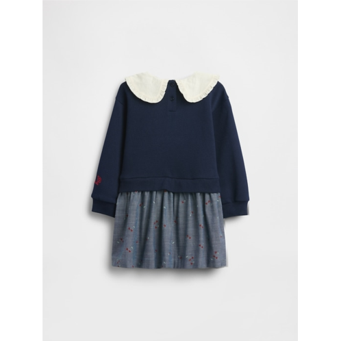 - Soft cotton-blend fleece sweatshirt with cotton chambray skirt mixed media dress.