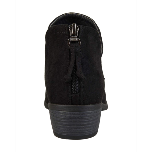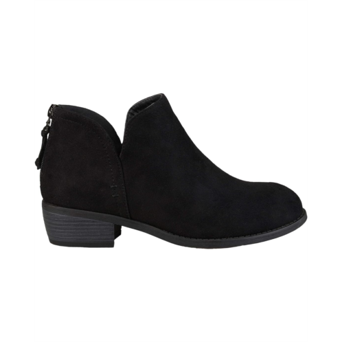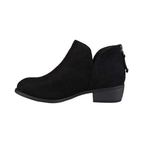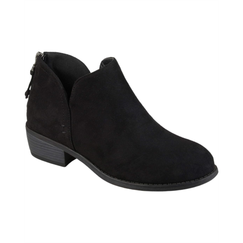 - The Journee Collection Livvy Bootie features a faux leather upper, slip-on construction with back zip closure, side vents, and stacked heel.