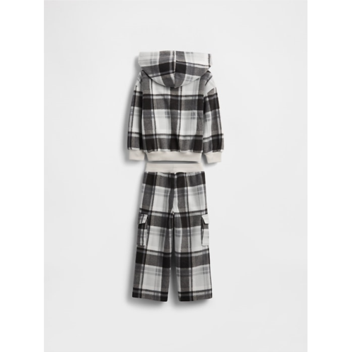 - Soft, cozy polar fleece half-zip hoodie and cargo pants outfit set.
