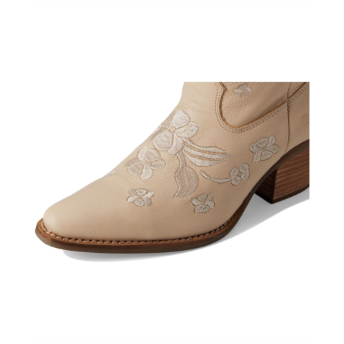 - Introducing Dingo 'Sweetheart' - the bootie that brings a touch of romance and elegance to your everyday style. Adorned with exquisite tone-on-tone floral embroidery, 'Sweetheart' offers a delicate and sophisticated look that's perfect for any occasion. The subtle detailing enhances the bootie's is your go-to bootie when you want to add a hint of romance to your look. The ankle-high boots feature sleek leather upper, polyester lining, and foam insole.