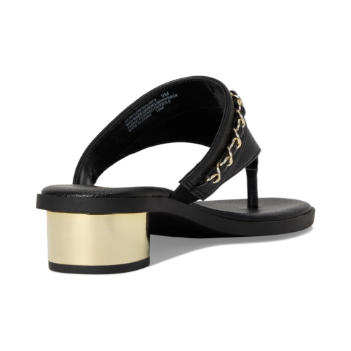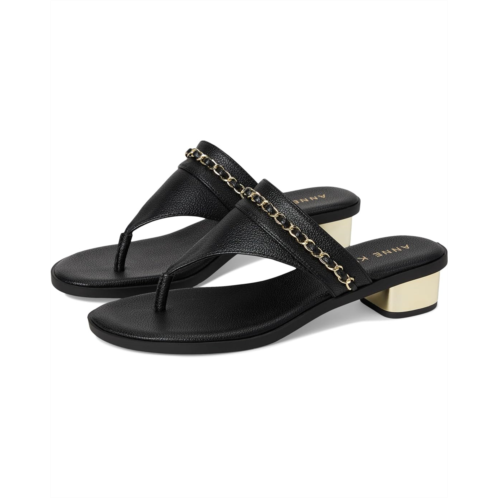 - Not only will your feet look good but they will feel even better with the Anne Klein Taylor sandals. They feature short block heels and a chic, open, round toe shape. The crisscross polyurethane upper adds sophistication while providing a secure fit. Chic and eye-catching, these thong sandals feature a bold chain detail running down the front, adding a touch of elegance to their sleek design. They are made of a rubber insole and synthetic rubber lining. The iFlex Technology is designed for ultimate comfort and offers a 90-degree footbend. Designed for easy slip-on wear, they prioritize comfort, making them versatile and ideal for any occasion. These heeled sandals are designed with an ultra-comfort padded footbed combined with a durable TPR outsole, providing unmatched support and movement. Offering a comfortable fit and stylish appeal, these versatile sandals effortlessly complement both casual and dressier outfits, making them a must-have for any wardrobe.