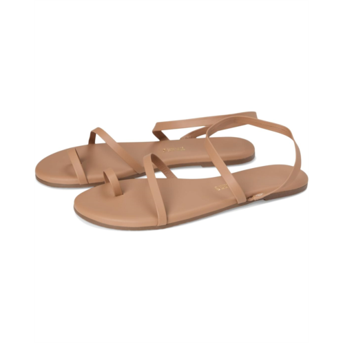 - The TKEES Mia Napa designed for the stylish you. Crafted from leather upper, lining, and insole, this pair of sandals features round toe, three delicate straps that float around the foot for a barely-there look, no-heel, backstrap closure, and slip-on style.