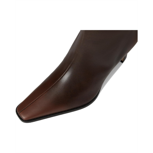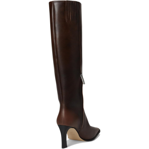 - Sleek, sculpted, and striking: MICHAEL Michael Kors Darrah Heeled Boots. Crafted with a luxe leather upper, soft polyester lining, and a supportive faux leather insole, they bring comfort without compromising style. The zippered side closure ensures easy wear, while the polished rubber outsole adds durability for all-day confidence. Defined by subtle design lines, an elongated snip toe, and a unique triangular stiletto heel, these boots exude modern elegance with an edge. The pointed toe elongates the silhouette, while the knee-high length makes them a versatile pairing with skirts, dresses, or sleek trousers.