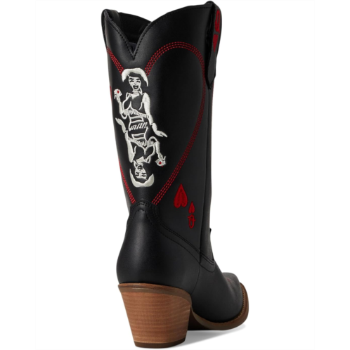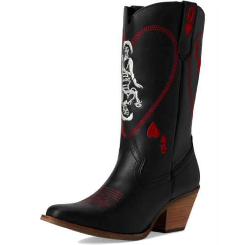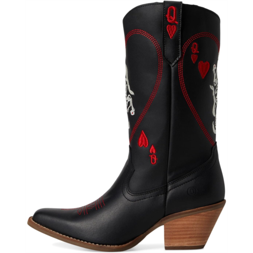 - Let your steps win the world wearing Dingo Queen A Hearts boots. Crafted from canvas upper, the boots feature unique and stately stitching throughout the shaft. A leather lining, cushion comfort insole, and mid-calf design makes comfortable stride. It has pointy toe, shaft pull-tab, and cowboy heel to let you step iinto royalty.