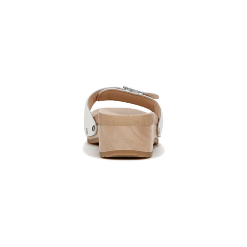 - Crafted from leather upper, polyurethane lining and wood insole, the Dr. Scholl's Original Too Slide Sandal is functional as well as fashionable. It features open round toe, wooden wedge heel, slip-on silhouette, and brand detailing on the footbed. This pair of comfortable footwear has handmade artisanal wood clog midsole, and adjustable metal buckle detailing on the top.