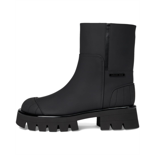 - MICHAEL Michael Kors Sydra Flat Bootie: Where utilitarian meets city chic with rubber toe caps, back counter details, and lug outsoles, it delivers on both function and fashion, making it the ultimate city trekking style for Fall. Flat bootie has a rounded toe design, polar plush lining that adds warmth and a luxe touch, and water-repellent faux leather upper ideal for unpredictable weather.