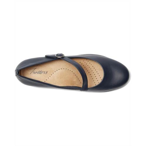 - Elevate your everyday style with the Trotters Rochelle Sandals. Expertly crafted from premium leather upper and breathable leather lining, this classic Mary Jane style shoe features an adjustable buckle with elastic goring for a comfortable and customized fit. The cushioned insole offers additional comfort, making these shoes ideal for extended periods of use. The sleek silhouette with almond toe shape makes them perfect for both professional and casual settings.