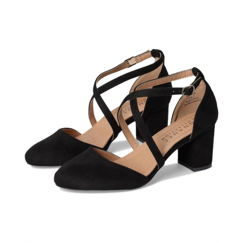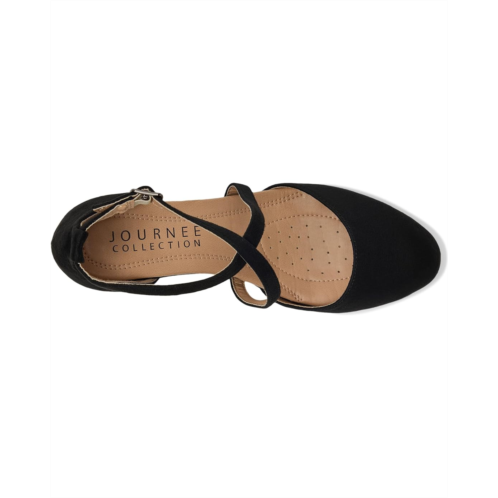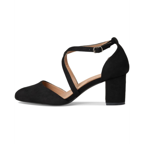 - Step into a classic style choosing this comfortable sole design by Journee Collection. This Foster pump features micro suede material, a crisscross buckle strap, an almond toe design, and a block heel height that will fit you perfectly. At Journee, our pump styles will let you go from a fun night out with the girls to kicking back and relaxing at the end of the night without any trouble.